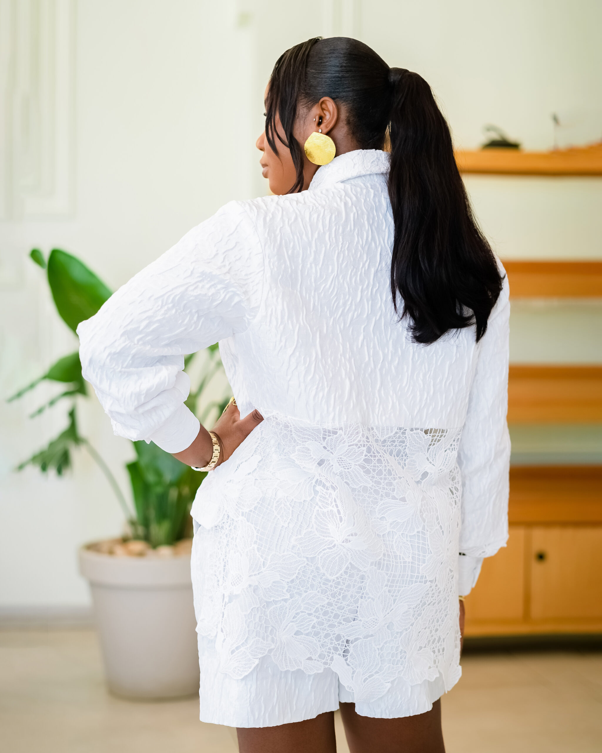 This shorts-and-shirt combo is all about laid-back beauty, featuring breathable fabrics and a flirty lace detail at the back for that subtle Pauligath magic.