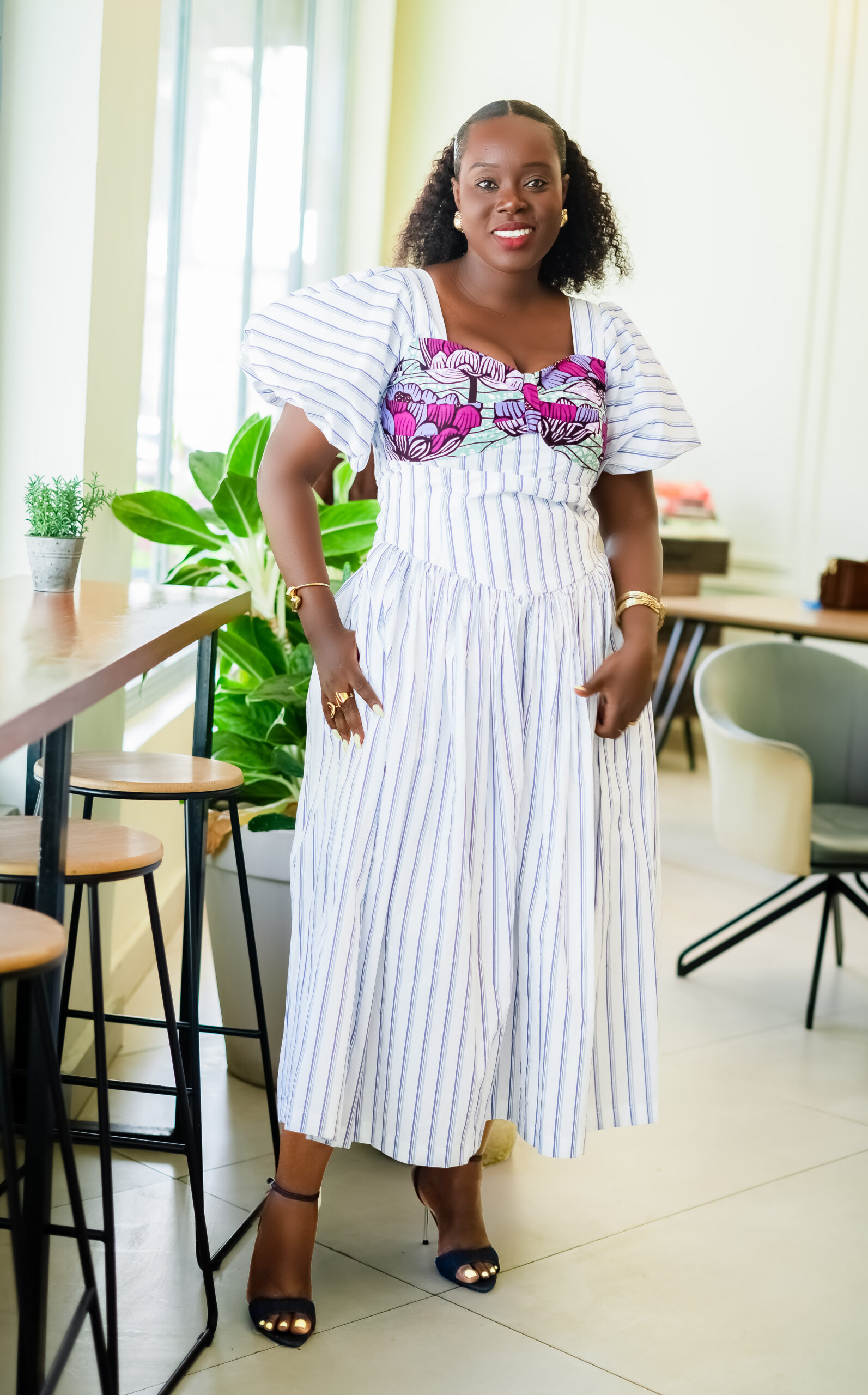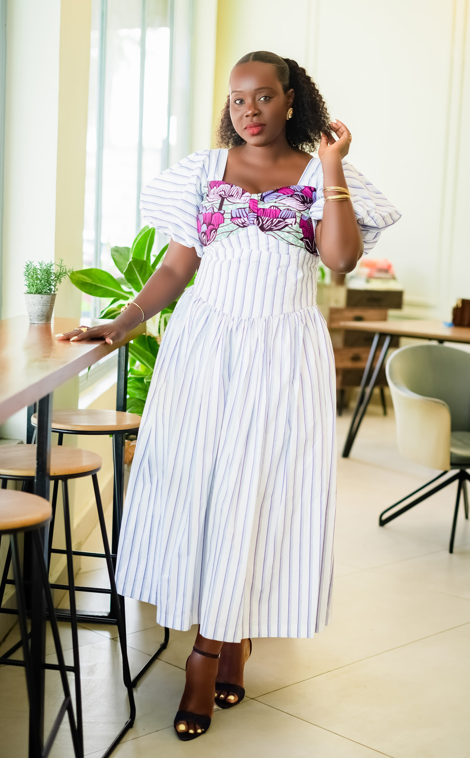 A sweet mix of stripes and soft floral African print—cute, feminine, and made for effortlessly stylish days.